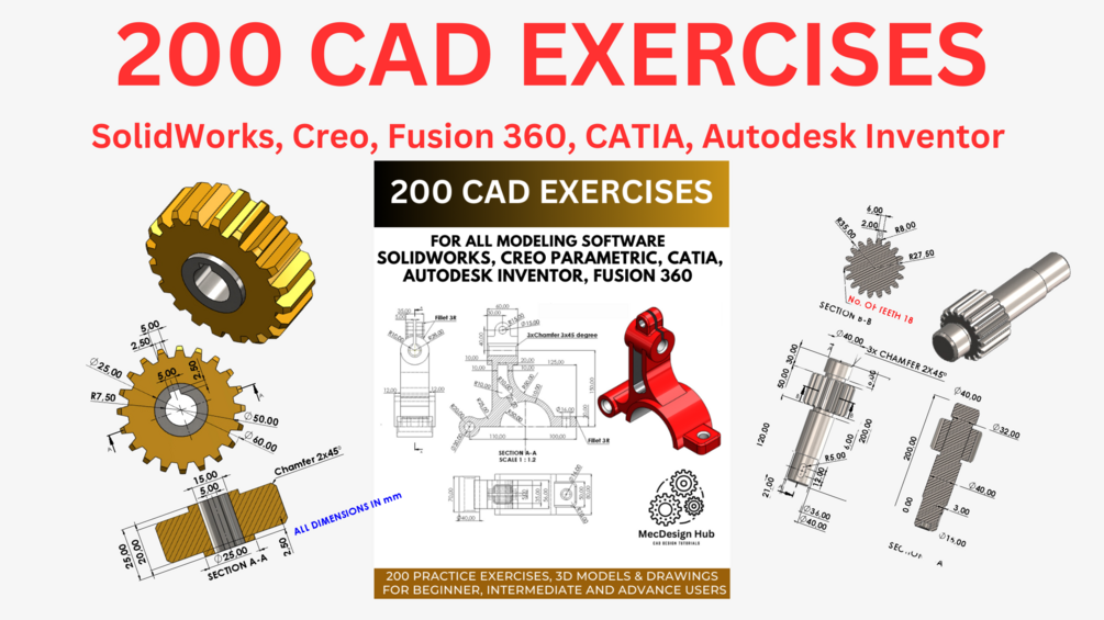 200 CAD Exercises for All modeling software | Perfect for SolidWorks, Creo, Fusion 360, CATIA , Autodesk Inventor & more